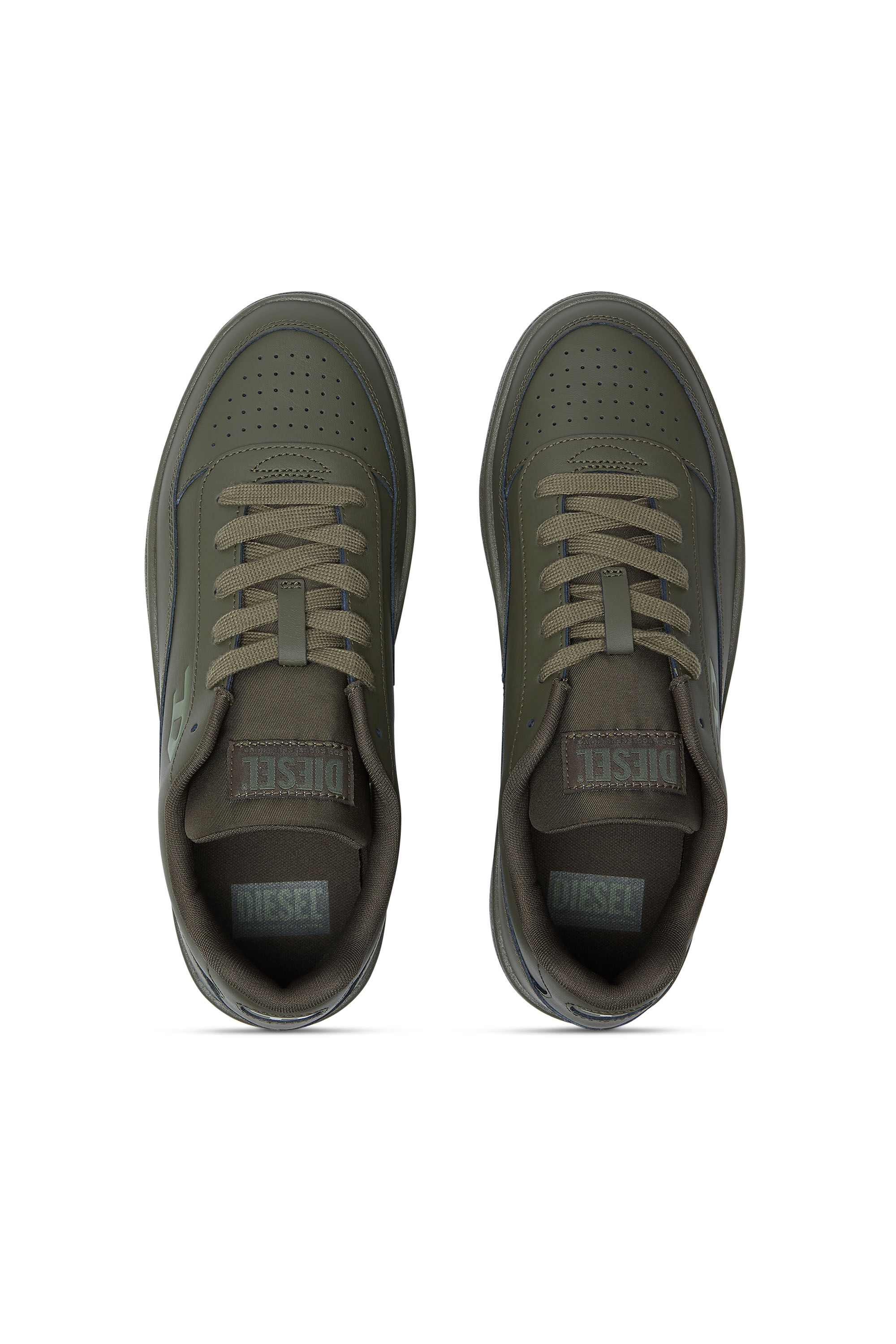 Men's low top sneaker made of soft calfskin leather with avant garde details. The nineties inspired upper has a classic silhouette, with contrasting Diesel logos on the tongue at the side. The chunky rubber sole has a custom tread.